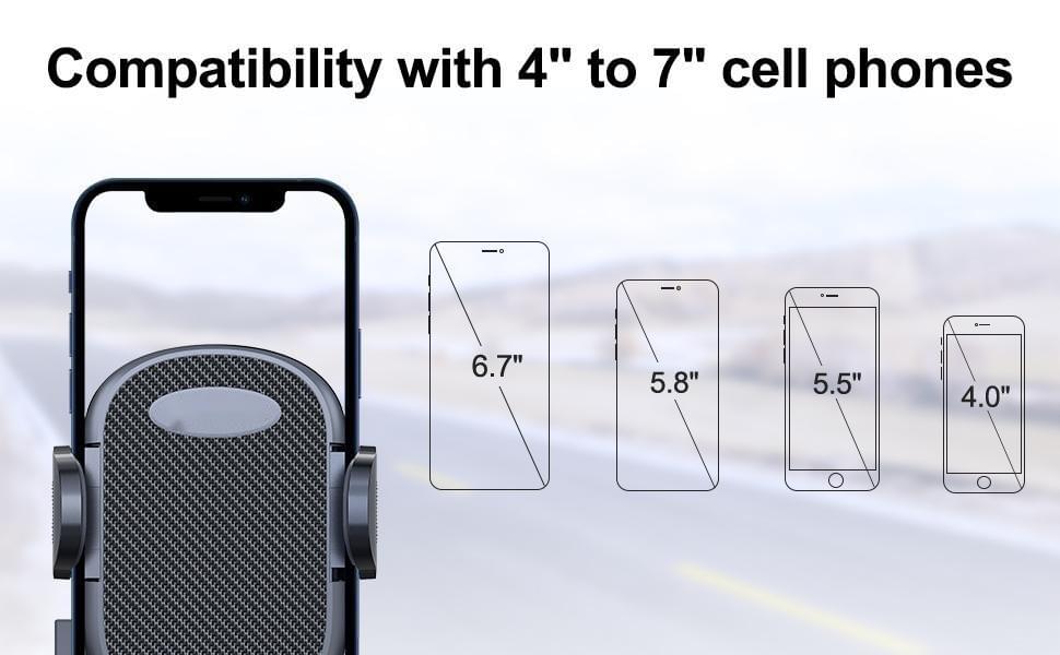 ·Compatible with all smartphones up to 6.7” - The car phone holder mount is suitable for all kinds of mobile phones with brand thick cases, Battery cases, Otter box, Ring cases.